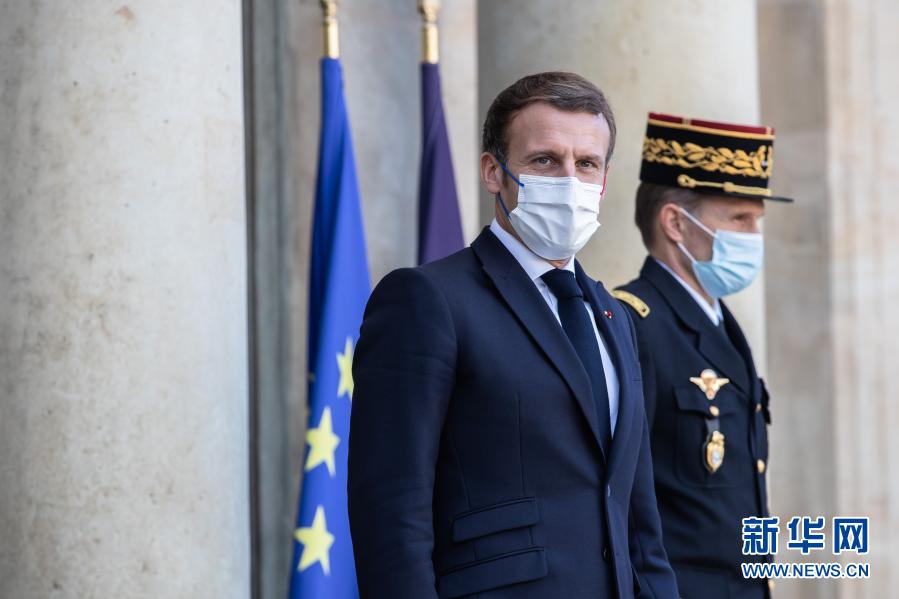 這是2020年11月12日,法國總統(tǒng)馬克龍?jiān)谖挥诎屠璧目偨y(tǒng)府愛麗舍宮迎接前來參加巴黎和平論壇的嘉賓的資料照片。新華社發(fā)(奧雷利安·莫里薩爾攝)