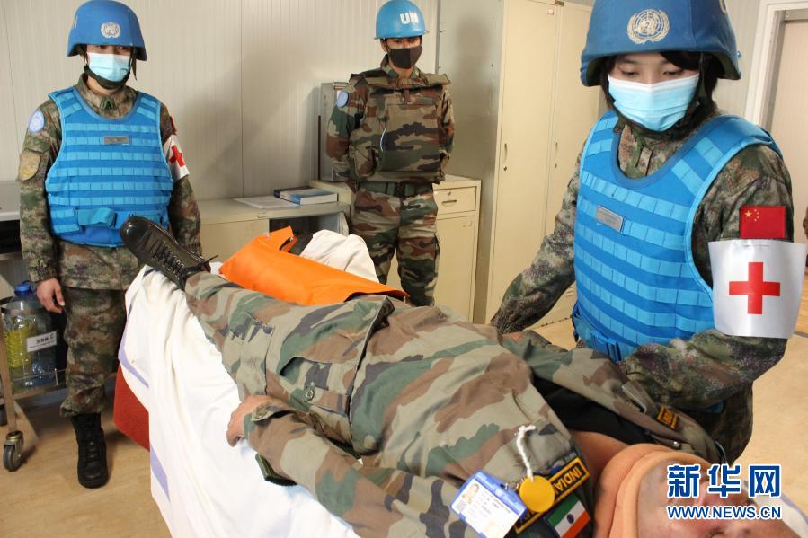 12月29日,中國第19批赴黎巴嫩維和部隊(duì)醫(yī)療分隊(duì)隊(duì)員參加代號為“東區(qū)天使2020-Ⅲ”的協(xié)同應(yīng)急醫(yī)療救援演練時(shí)對“傷員”進(jìn)行急診診斷。新華社發(fā)(雷洋攝)