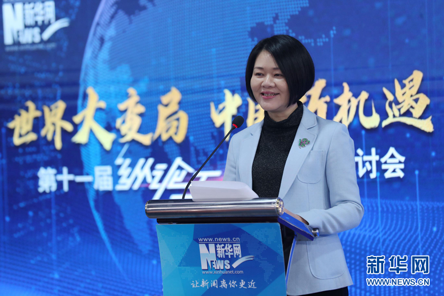 1月8日,新華網第十一屆“縱論天下”國際問題研討會在北京成功舉行。圖為新華網黨委書記、副董事長徐姍娜發(fā)表致辭。新華網 郭小天 攝