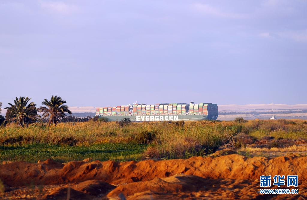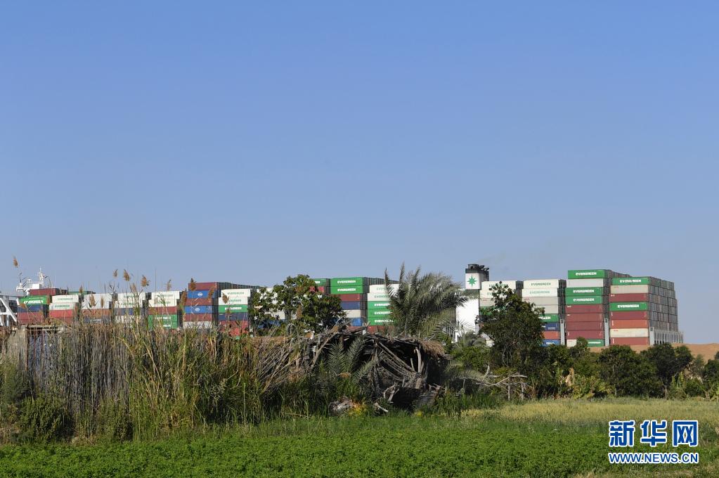 這是3月29日拍攝的移動(dòng)至埃及蘇伊士運(yùn)河正常航道上的重型貨輪。新華社發(fā)(艾哈邁德·戈馬 攝)