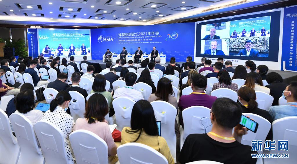 這是博鰲亞洲論壇2021年年會(huì)“健康絲綢之路”分論壇現(xiàn)場(chǎng)(4月18日攝)。新華社記者 楊冠宇 攝