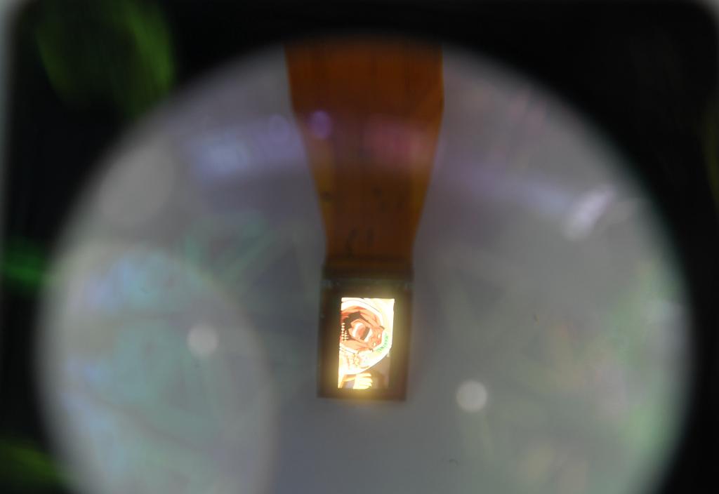 這是2020年9月6日在服貿(mào)會拍攝的全彩虛擬現(xiàn)實數(shù)字光場芯片模組。(新華社記者張晨霖攝)