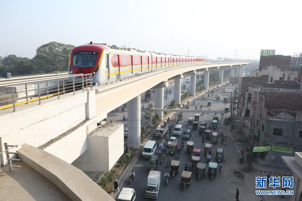 在巴基斯坦拉合爾市,一輛橙線地鐵列車準(zhǔn)備進(jìn)站(2020年10月26日攝)。當(dāng)日,巴基斯坦首條地鐵——拉合爾橙線迎來首批乘客,標(biāo)志著巴基斯坦步入“地鐵時(shí)代”。新華社記者劉天攝