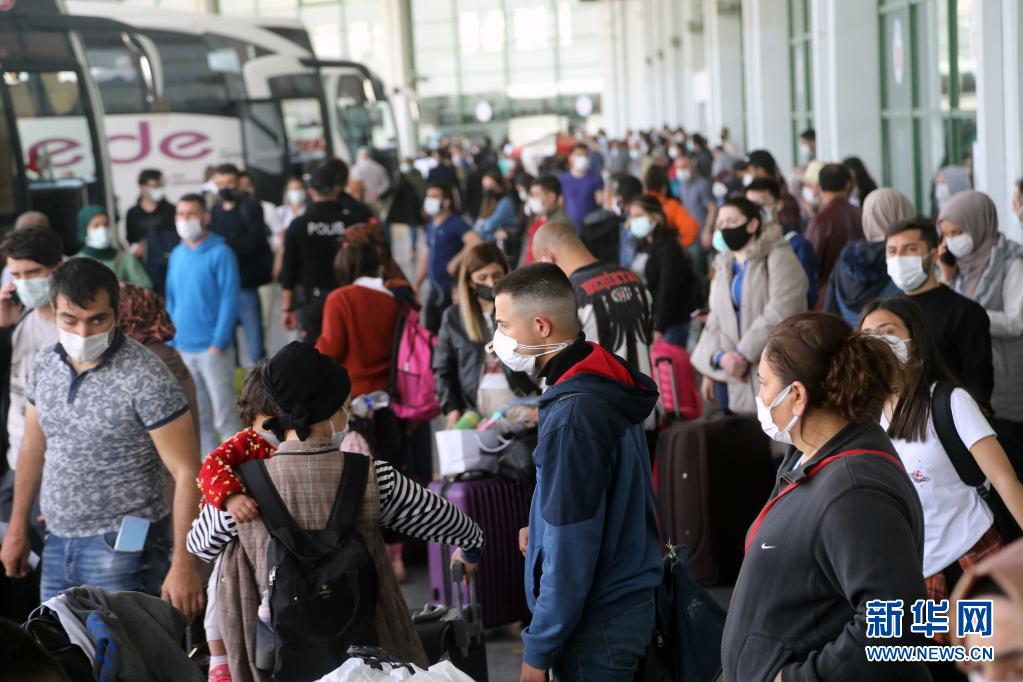 4月29日禁令實施前,人們聚集在土耳其安卡拉汽車站準(zhǔn)備出行。