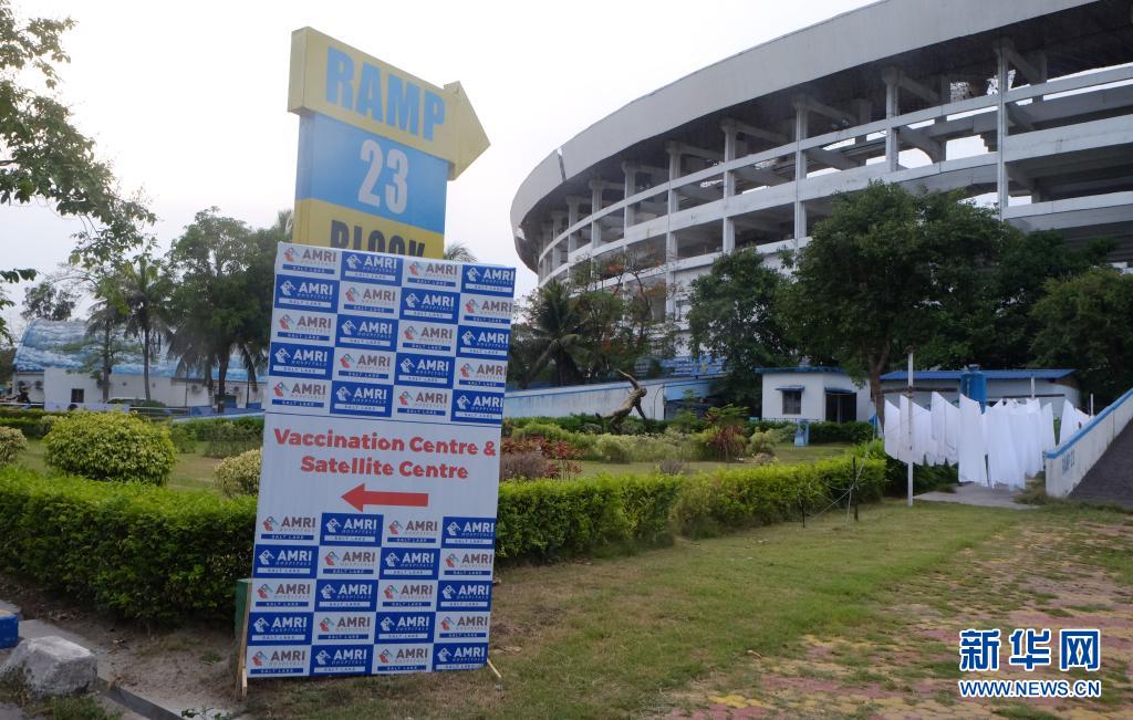 5月6日,在印度加爾各答,一處足球場(chǎng)被改造成新冠隔離中心。