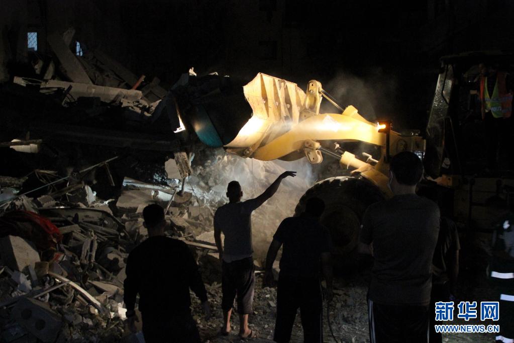 5月15日,救援人員在加沙城的空襲廢墟中搜救。