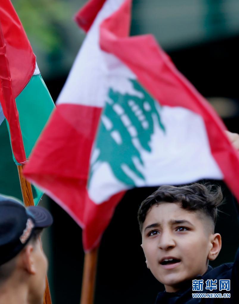 5月15日,人們在黎巴嫩首都貝魯特參加抗議示威活動,聲援巴勒斯坦民眾。