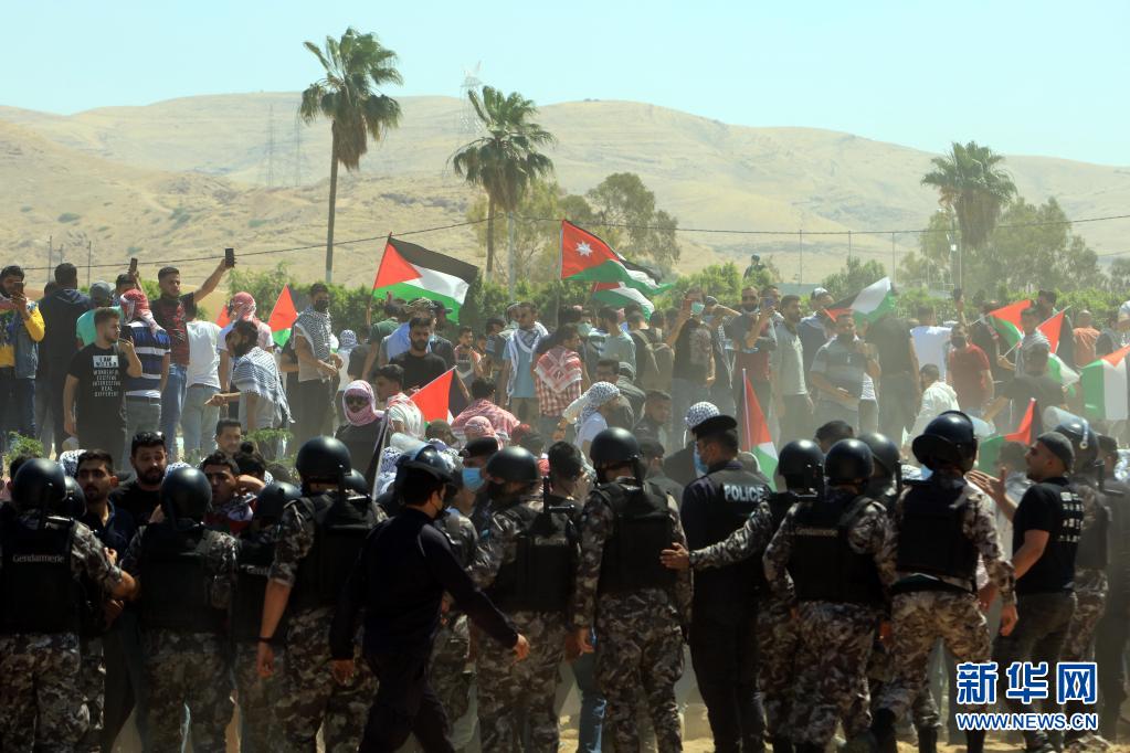 5月14日,人們在約旦凱拉邁附近舉行抗議示威活動,聲援巴勒斯坦民眾。