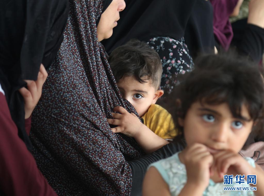 5月17日,受巴以沖突影響而逃離家園的巴勒斯坦婦女和兒童在加沙地帶拉法的一所學(xué)校臨時棲身。