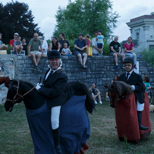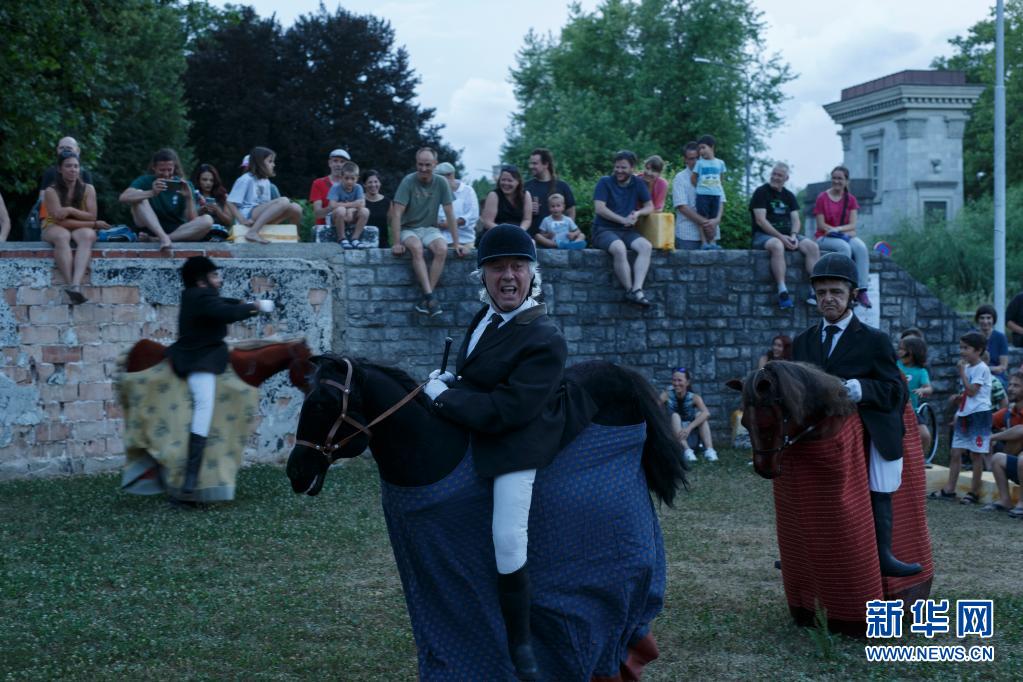 6月30日傍晚,藝術工作者在斯洛文尼亞首都盧布爾雅那進行街頭戲劇節(jié)表演。