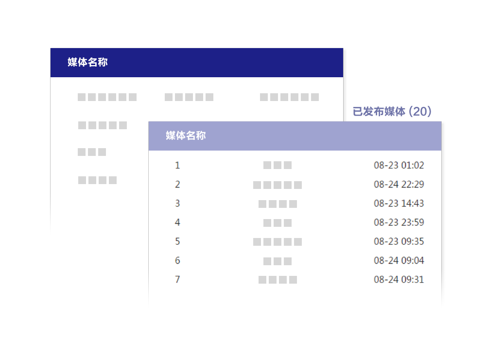 指令下發(fā)稿件實(shí)時監(jiān)控展示,左側(cè)代表未發(fā)布媒體,右側(cè)代表已發(fā)布媒體。監(jiān)測媒體用戶可以主動配置。
